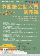 中央図書館サポートデスクの中国語スタッフが企画する中国語を基礎から学ぶ講座です。留学生からネイティブの中国語を学んでみませんか? ◆ 各回はそれぞれ独立した内