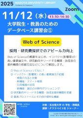 [大学院生・教員のための データベース講習会]①Web of Science ②Journal Citation Reports (11/12)