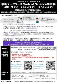 本講習では、論文検索ツール「Web of Science」を活用し、「インパクトのある論文」や「次に読むべき論文」を効率的に見つける方法を解説します。