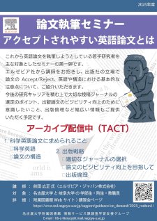 第一著者として国際ジャーナルへの論文投稿経験がない、これから英語論文を執筆しようとしている若手研究者を主な対象としたセミナーです。